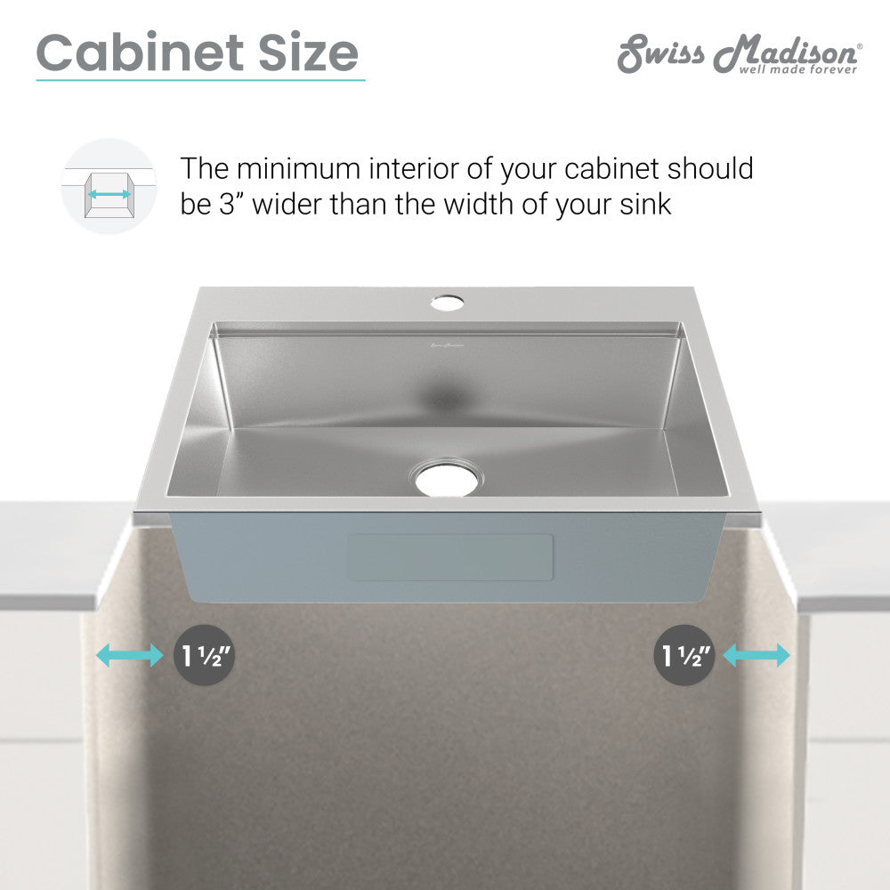 • Cabinet Size: The minimum interior of your cabinet should be 3" wider than the width of your sink.