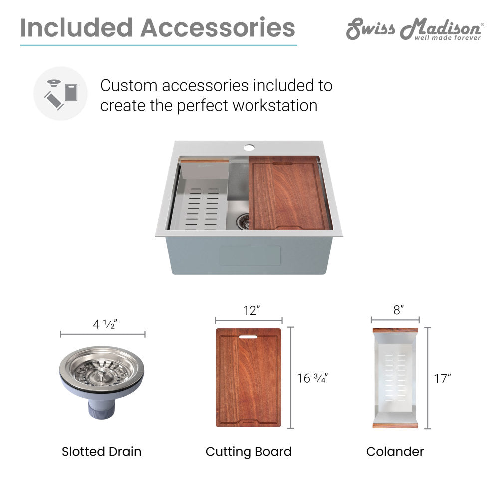Ravi Single Basin 25 x 22 Topmount Kitchen Workstation Sink
