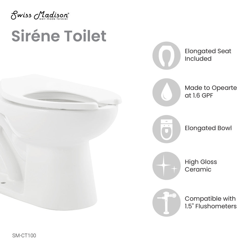 Sirene Floor-Mounted Commercial Elongated Top Flush Spud Flushometer Toilet Bowl