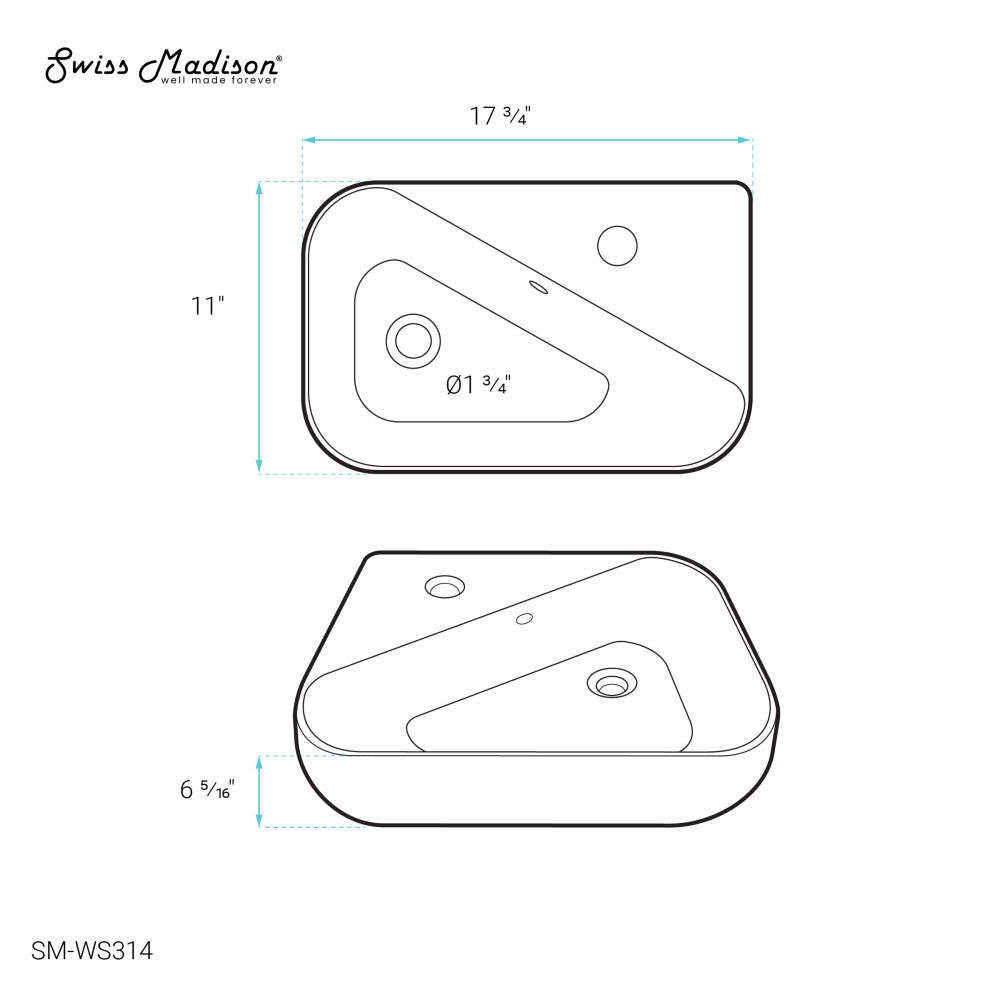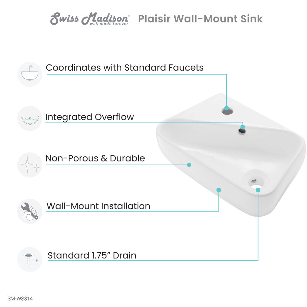 Plaisir 18 x 11 Ceramic Wall Hung Sink with Left Side Faucet Mount