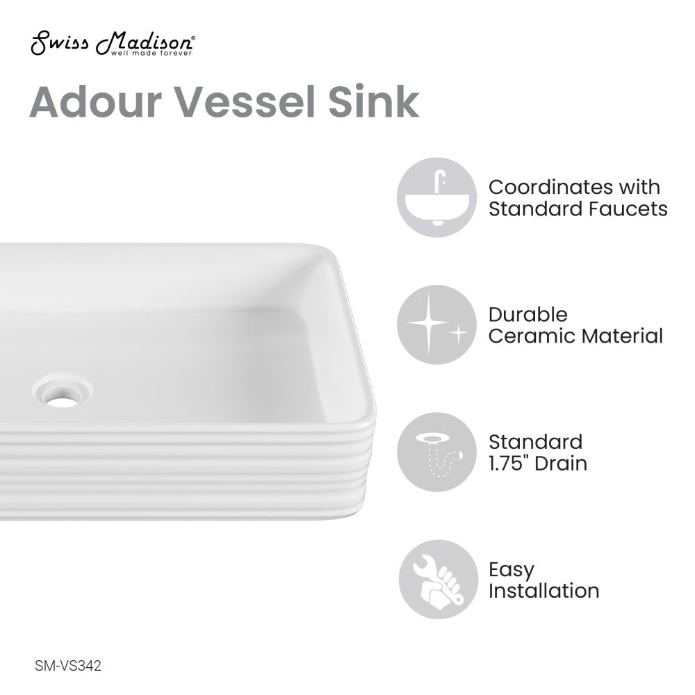 Discover the fluid beauty of the Adour collection, where graceful lines and modern aesthetics redefine interiors. Elevate your bathroom aesthetic with our vessel sinks, blending artistry and utility to create a stunning statement piece. Offered in white with a glossy finish.