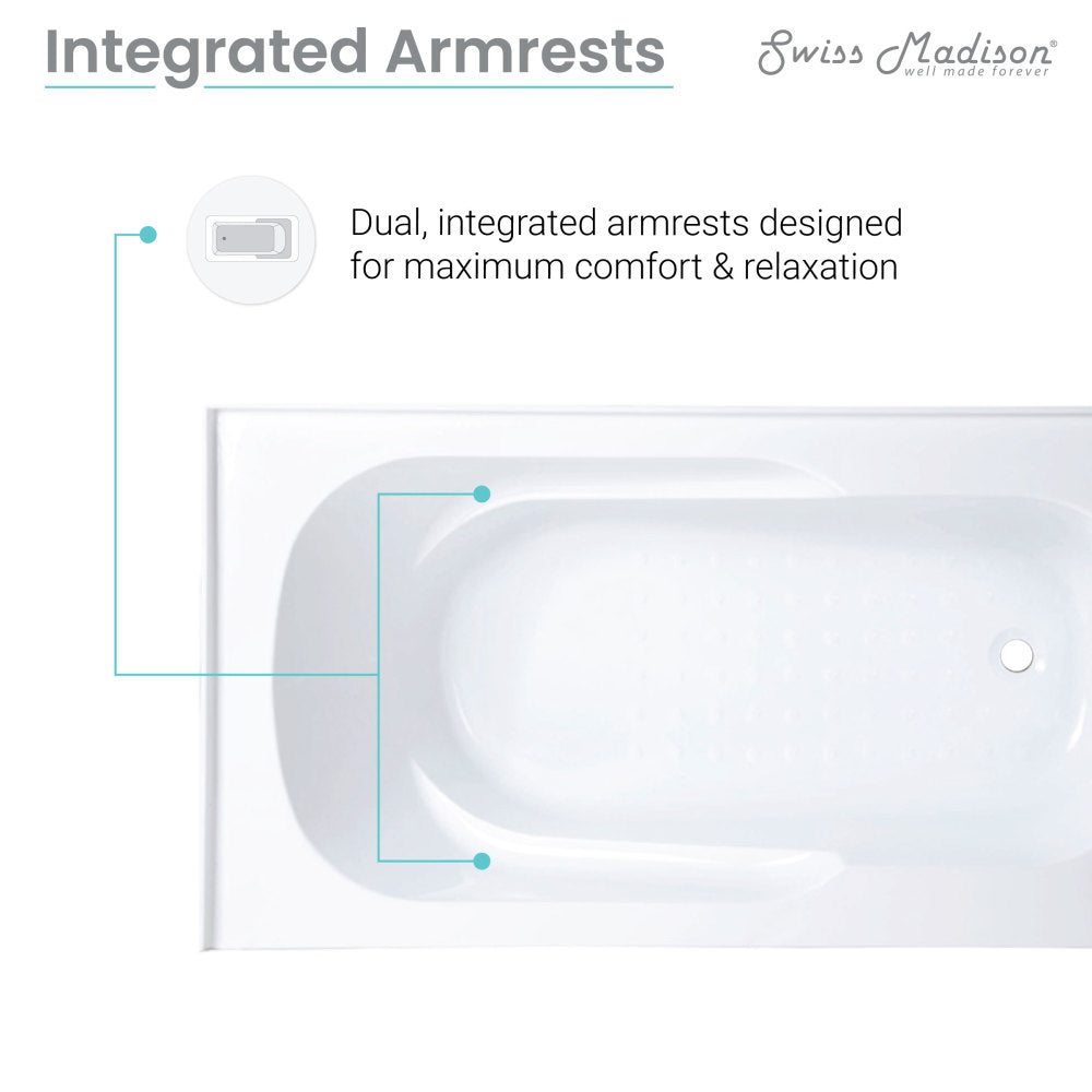 • Integrated armrest: Bathtubs featuring integrated armrests offer comfortable support, enhanced stability, and ease of use.