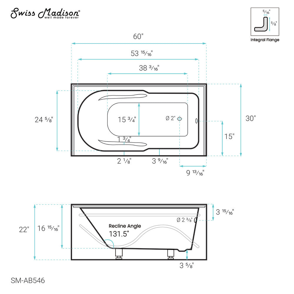 Ivy 60" x 30" Right-Hand Drain Alcove Bathtub with Apron