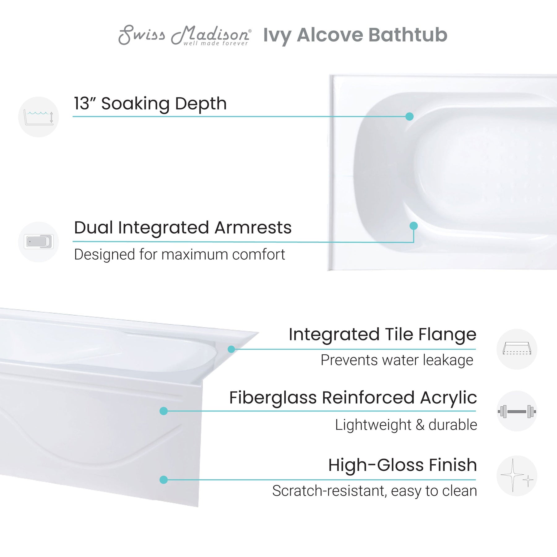 • Soaking depth: 13 Inches.