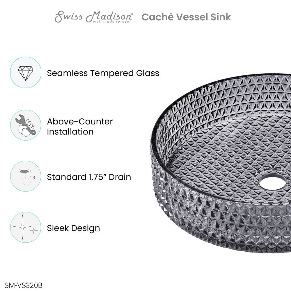 Discover simple beauty in the Cache collection, where functionality and style unite seamlessly to enhance your living space. Elevate your bathroom aesthetic with our vessel sinks, blending artistry and utility to create a stunning statement piece. Offered in black with a glossy finish.