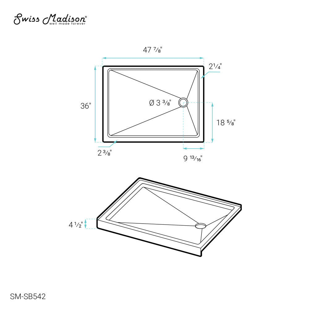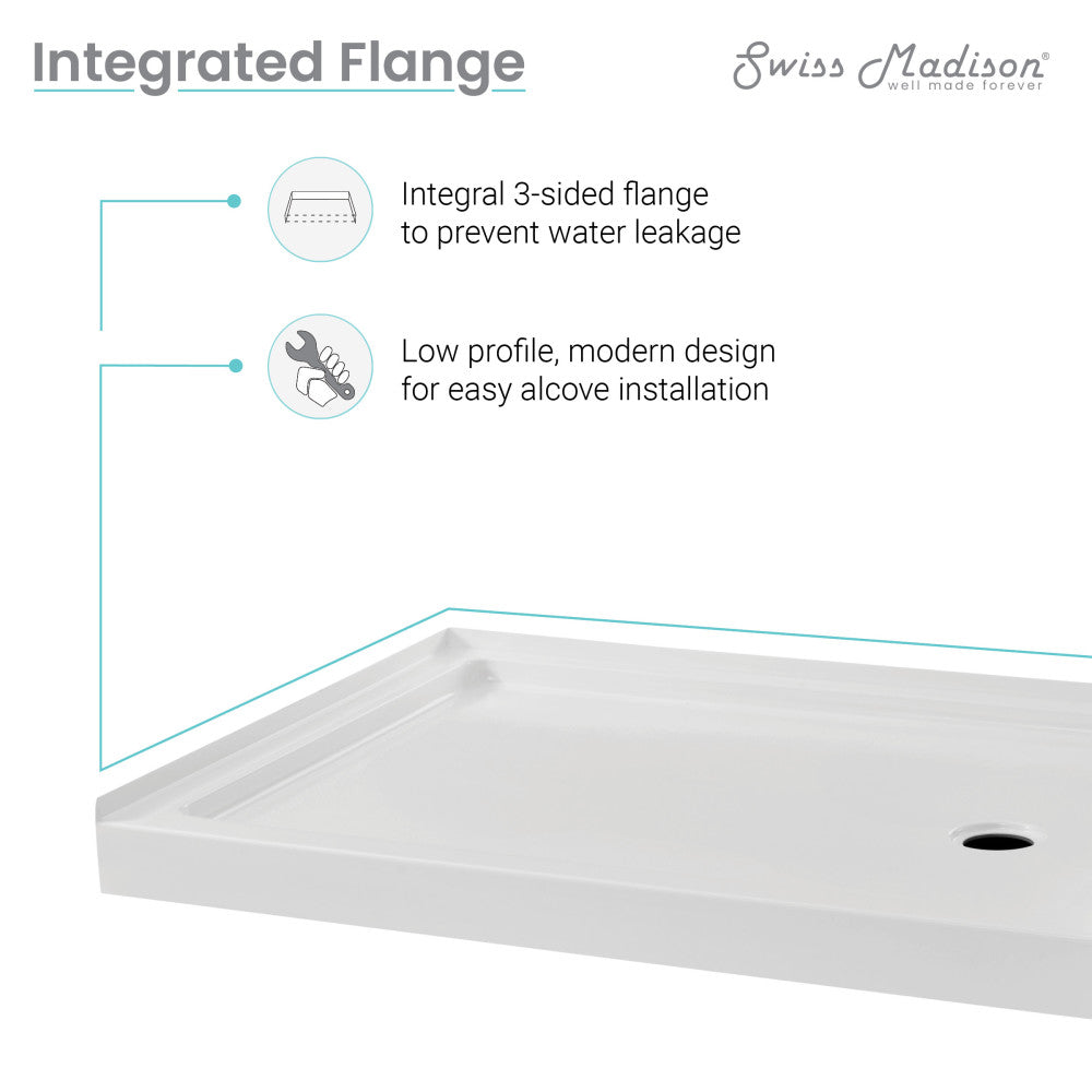 Carre 48" x 36" Acrylic White, Single-Threshold, Right Drain, Shower Base