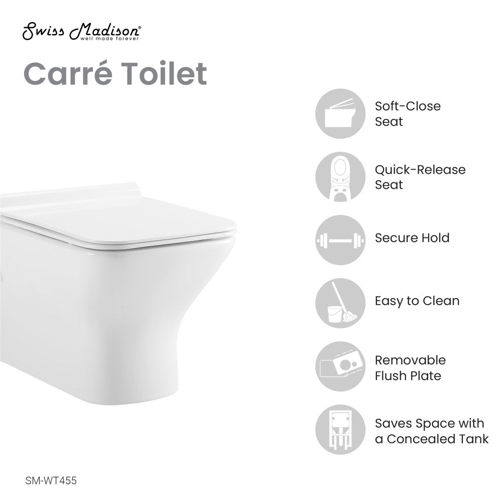Embrace geometric balance with the Carre collection, where clean lines and modern design principles take center stage. Optimize space and aesthetics with our wall-mount toilets, offering a clean and polished look with seamless integration. Offered in white with a glossy finish.