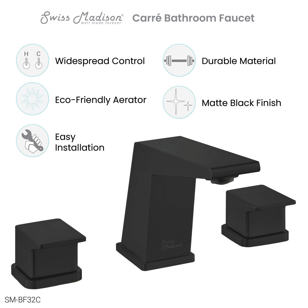 Embrace geometric balance with the Carre collection, where clean lines and modern design principles take center stage. Redefine elegance in your bathroom with our widespread faucets with a timeless design and dual control. Offered in black with a matte finish.