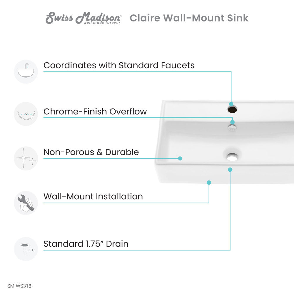 Discover the radiant elegance of the Claire collection, where ethereal designs elevate the ambiance of any setting. Embrace contemporary simplicity with our wall-mount sinks, combining space-efficient design and innovative aesthetics creating a sleek and functional environment. Offered in white with a glossy finish.