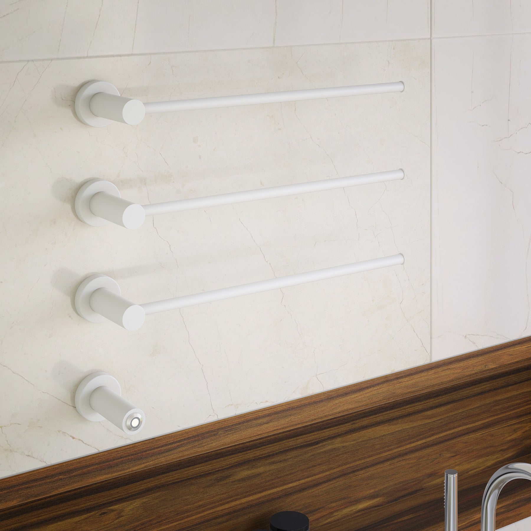 Discover the radiant elegance of the Claire collection, where ethereal designs elevate the ambiance of any setting. Indulge in the luxury of toasty towels with our sleek towel warmers adding a touch of comfort and sophistication to your bathroom experience. Offered in white with a matte finish.