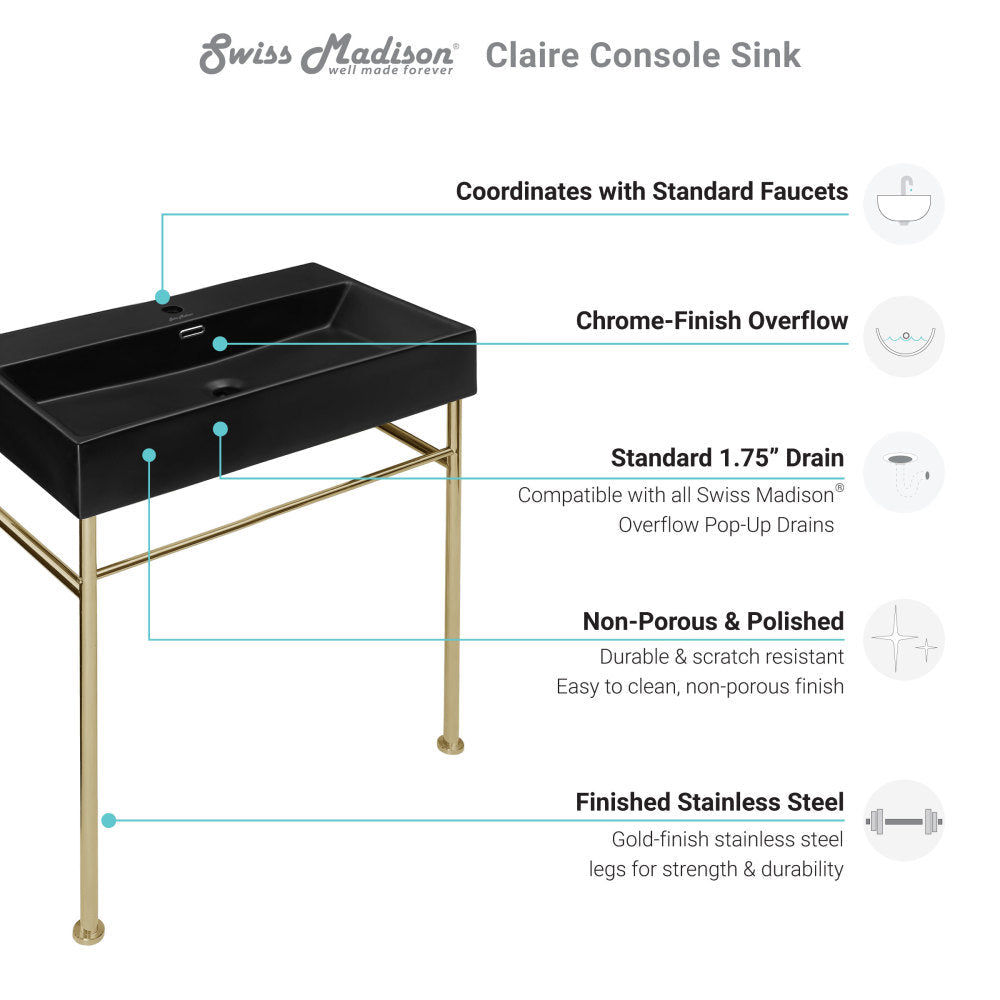 Discover the radiant elegance of the Claire collection, where ethereal designs elevate the ambiance of any setting. Redefine sophistication in your bathroom with our console sink, merging vintage charm and a minimalist design for a unique allure. Offered in black with a matte finish.