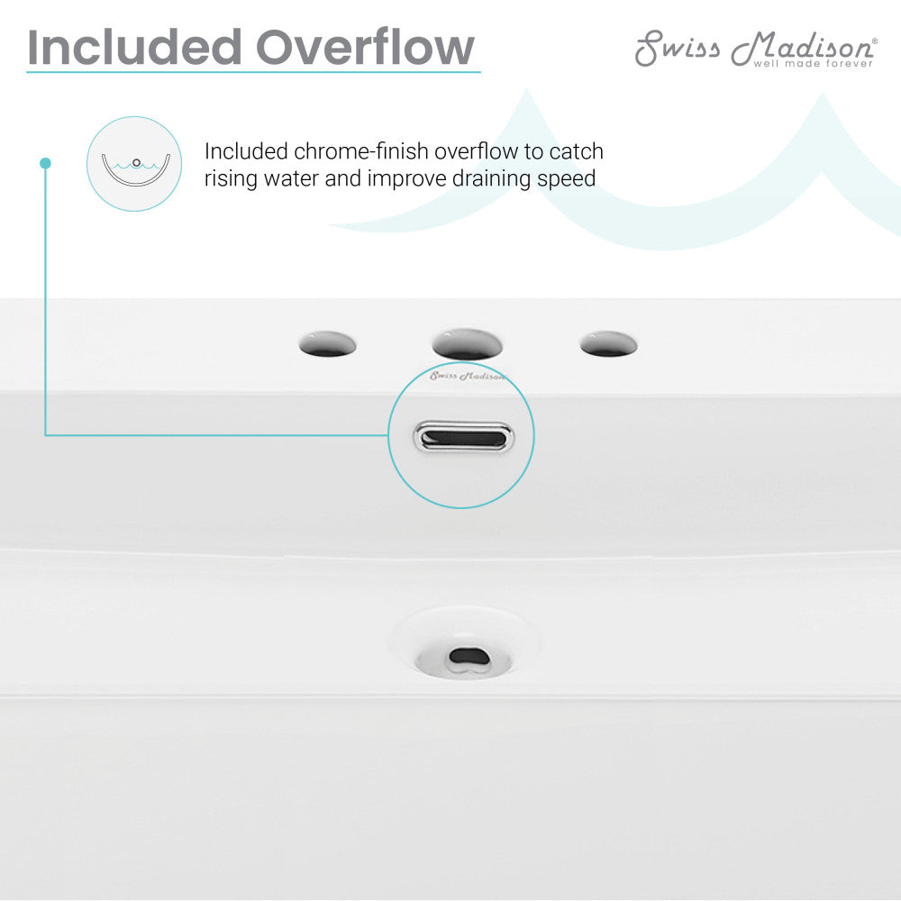 - Overflow: Equipped with an overflow that offers easy installation, spill prevention, and space-saving properties.
