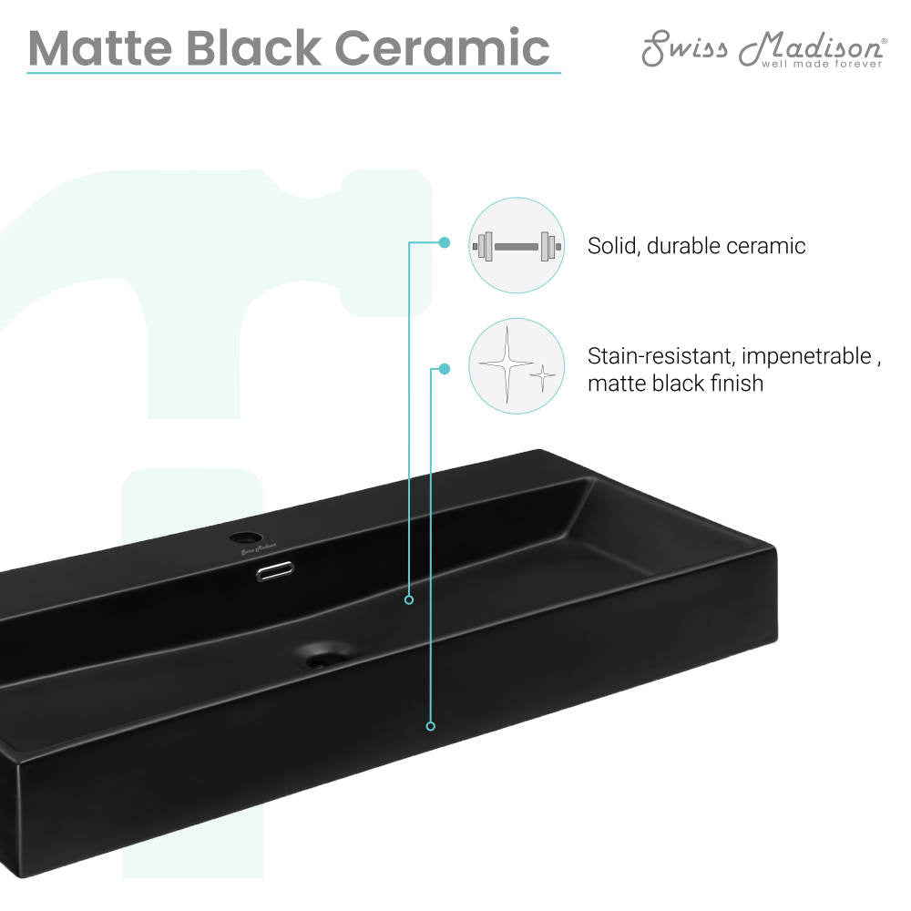 Discover the radiant elegance of the Claire collection, where ethereal designs elevate the ambiance of any setting. Embrace contemporary simplicity with our wall-mount sinks, combining space-efficient design and innovative aesthetics creating a sleek and functional environment. Offered in black with a matte finish.