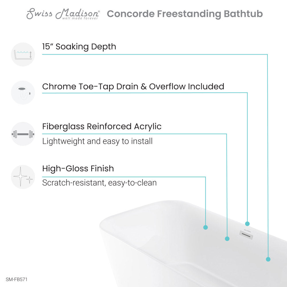 Discover the allure of modern opulence with the Concorde collection, where sleek designs and luxurious materials evoke a sense of opulence. Indulge in luxury with our freestanding bathtubs, designed for an extraordinary bathing experience. Offered in white with a glossy finish.