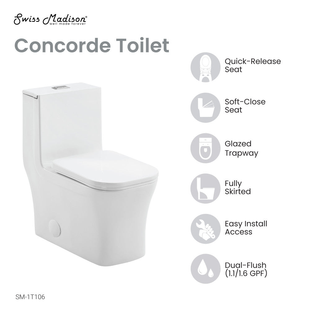Discover the allure of modern opulence with the Concorde collection, where sleek designs and luxurious materials evoke a sense of opulence. Redefine your bathroom with our one-piece toilet, combining seamless design and functionality for a truly modern upgrade. Offered in white with a glossy finish.