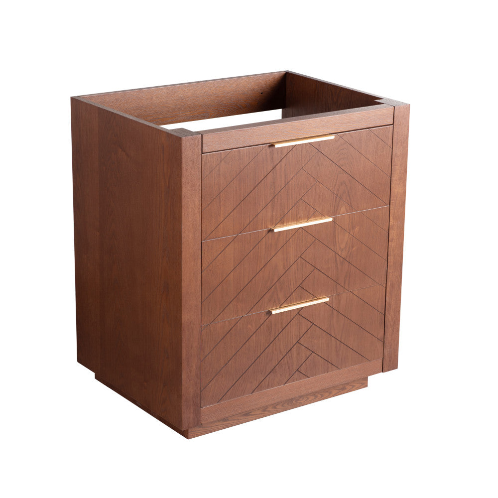 Experience urban sophistication with the Daxton collection, where modern aesthetics and functional design converge. Tailor your bathroom to perfection with our cabinets-only vanities, offering customizable vanity top solutions to integrate with your design vision. Offered in walnut.