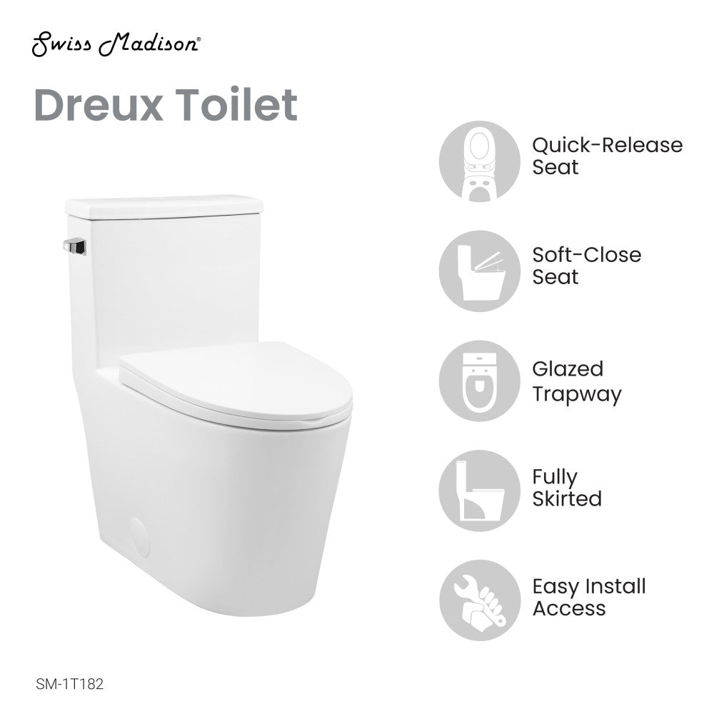 Immerse yourself in contemporary designs with the Dreux collection, where innovation, functionality, and aesthetics come together. Redefine your bathroom with our one-piece toilet, combining seamless design and functionality for a truly modern upgrade. Offered in white with a glossy finish.