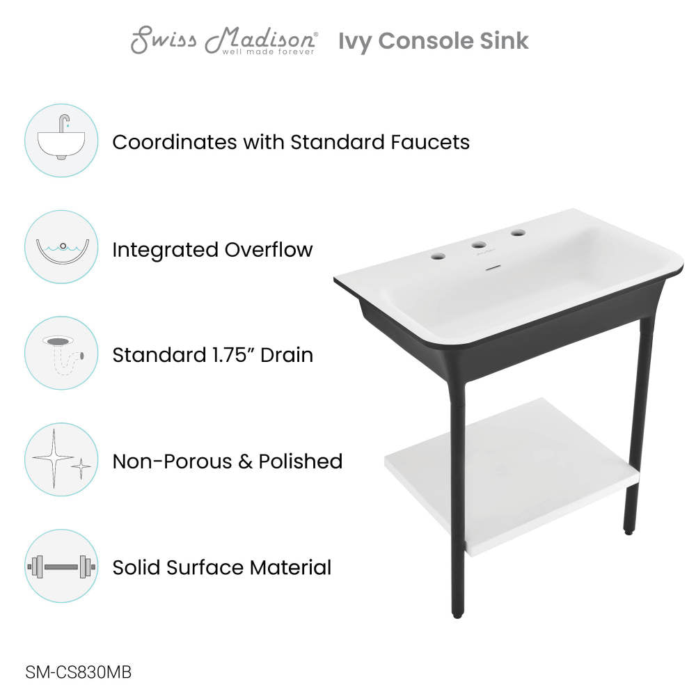 Indoor natural aesthetics flourish with the Ivy collection, where organic, fresh designs harmonize living spaces. Redefine sophistication in your bathroom with our console sink, merging vintage charm and a minimalist design for a unique allure. Offered in black with a matte finish.
