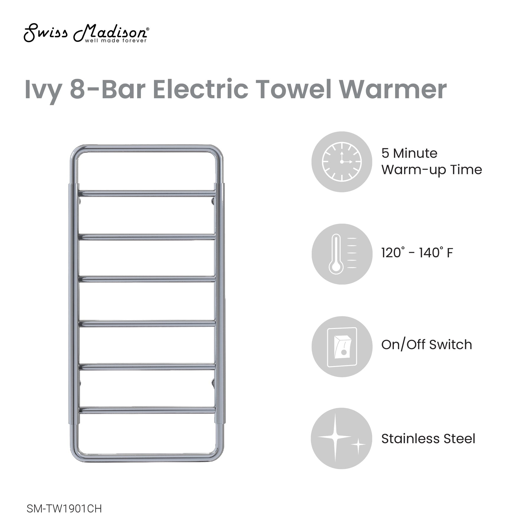 Ivy 8-Bar Electric Towel Warmer in Chrome