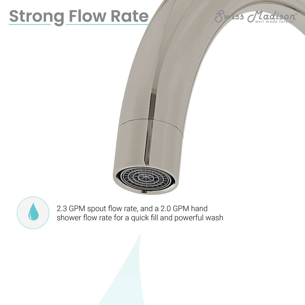 - Tub Spout Flow Rate: 2.3 GPM
