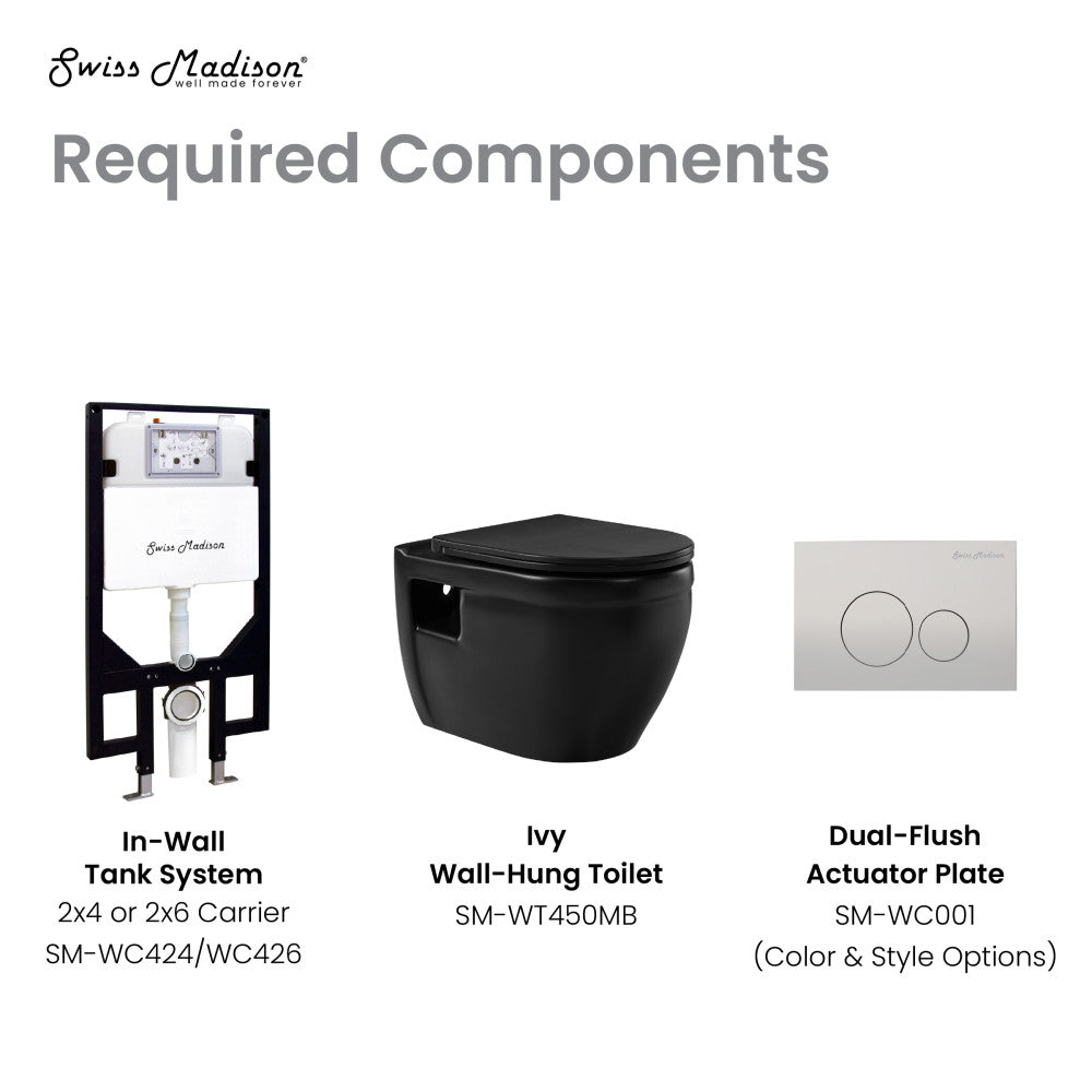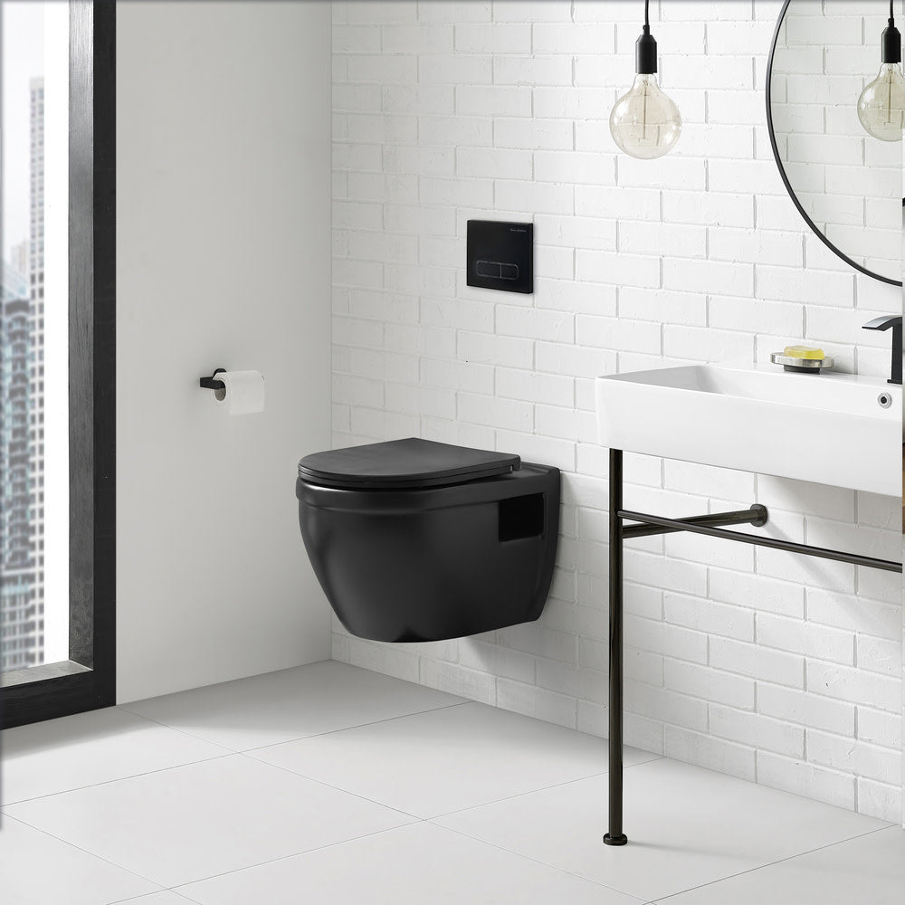 Indoor natural aesthetics flourish with the Ivy collection, where organic, fresh designs harmonize living spaces. Optimize space and aesthetics with our wall-mount toilets, offering a clean and polished look with seamless integration. Offered in black with a matte finish.