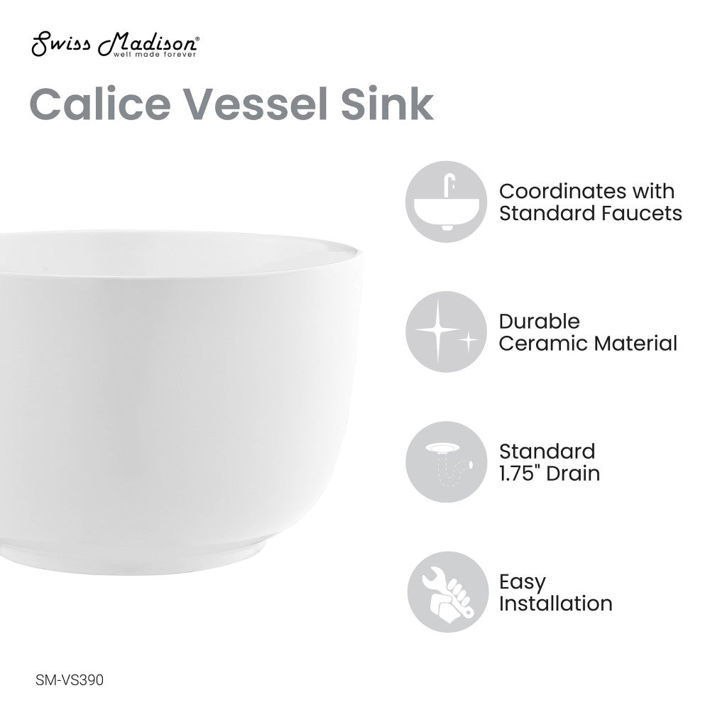 Embrace modern minimalism with the Calice collection, where each piece channels simplicity and sophistication. Elevate your bathroom aesthetic with our vessel sinks, blending artistry and utility to create a stunning statement piece. Offered in white with a glossy finish.