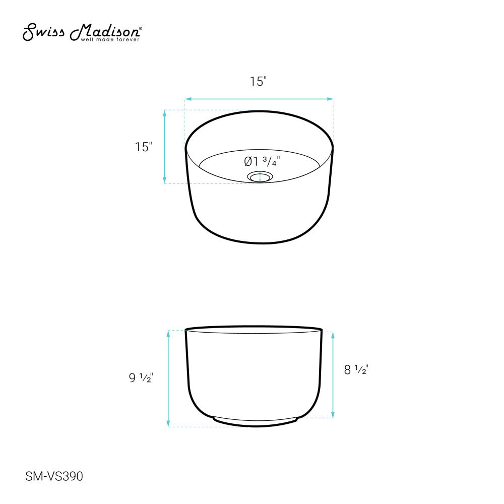- Dimensions: D: 15" W: 15" H: 9.5"