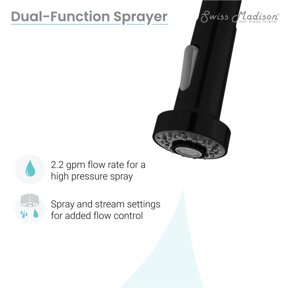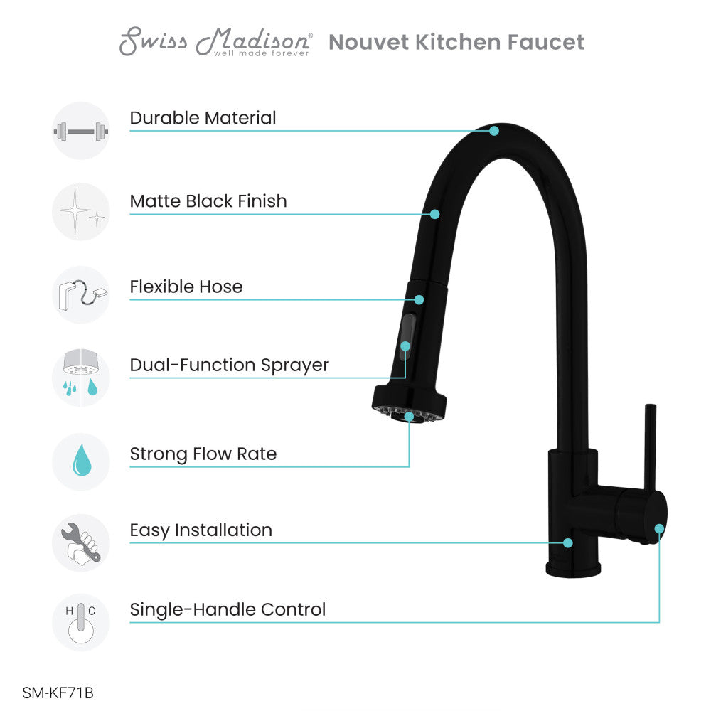 Embark on a new journey of style with the Nouvet collection, where innovative designs redefine the contemporary aesthetic. Redefine your kitchen workflow with our pull-down faucets, offering flexibility and convenience for your daily tasks. Offered in black with a matte finish.