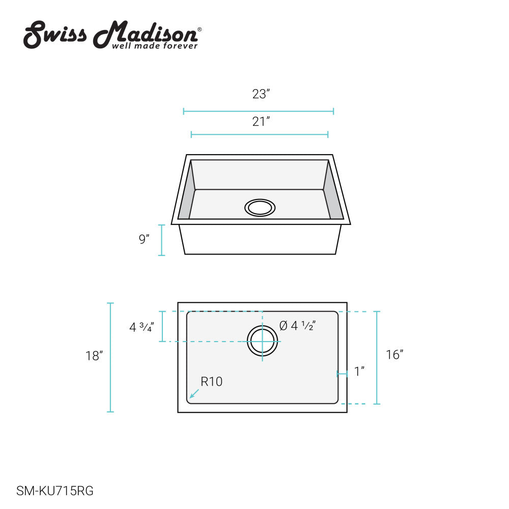 Rivage 23 x 18 Stainless Steel, Single Basin, Undermount Kitchen Sink, Rose Gold