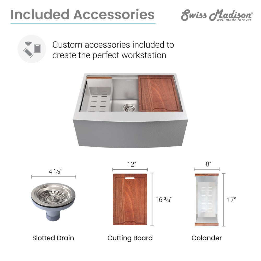 Rivage 30 x 22 Single Basin Apron Kitchen Workstation Sink