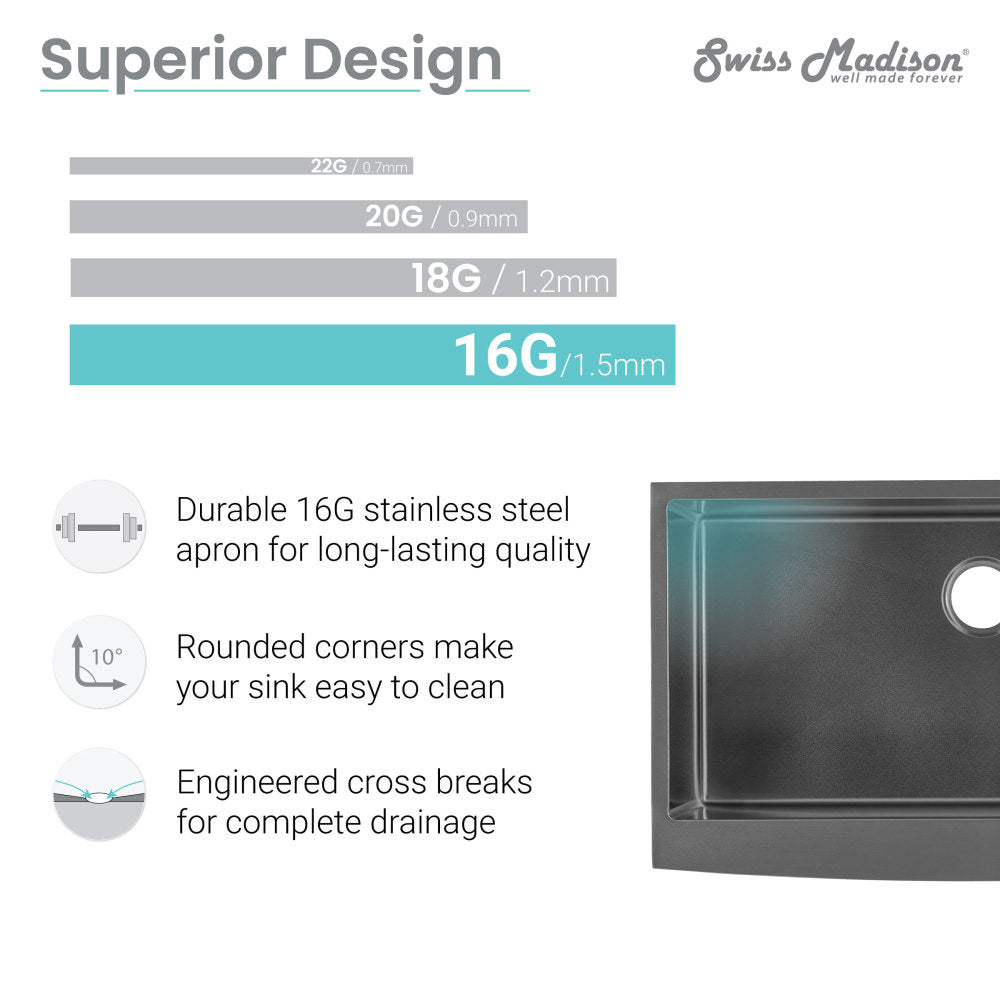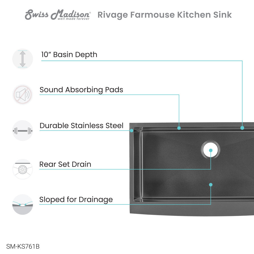 Immerse yourself in coastal tranquility with the Rivage collection, embracing relaxed elegance and natural textures. Infuse rustic charm and modern convenience into your kitchen with our farmhouse sinks, blending traditional appeal with contemporary utility. Offered in stainless steel with a black finish.
