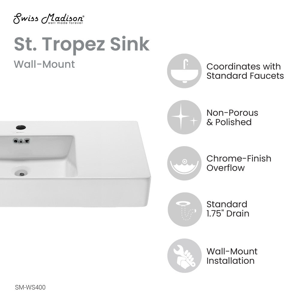 St. Tropez 30" Left Side Faucet Wall-Mount Bathroom Sink