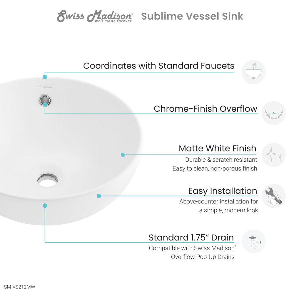 Elevate your home with the Sublime collection, epitomizing refined luxury through meticulously curated pieces. Elevate your bathroom aesthetic with our vessel sinks, blending artistry and utility to create a stunning statement piece. Offered in white with a matte finish.