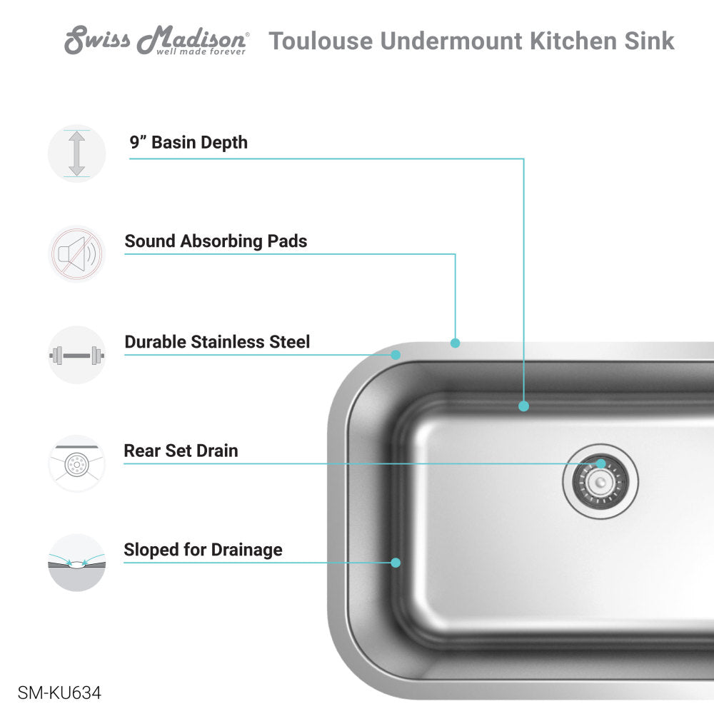 Toulouse 27 x 18 Stainless Steel, Single Basin, Undermount Kitchen Sink