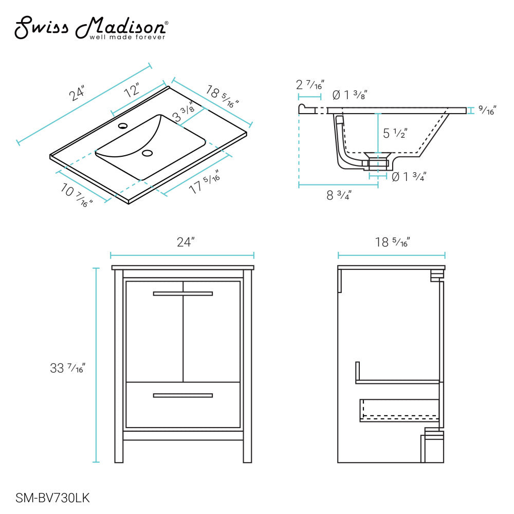 - Pre-drilled standard 1 3/8" faucet hole