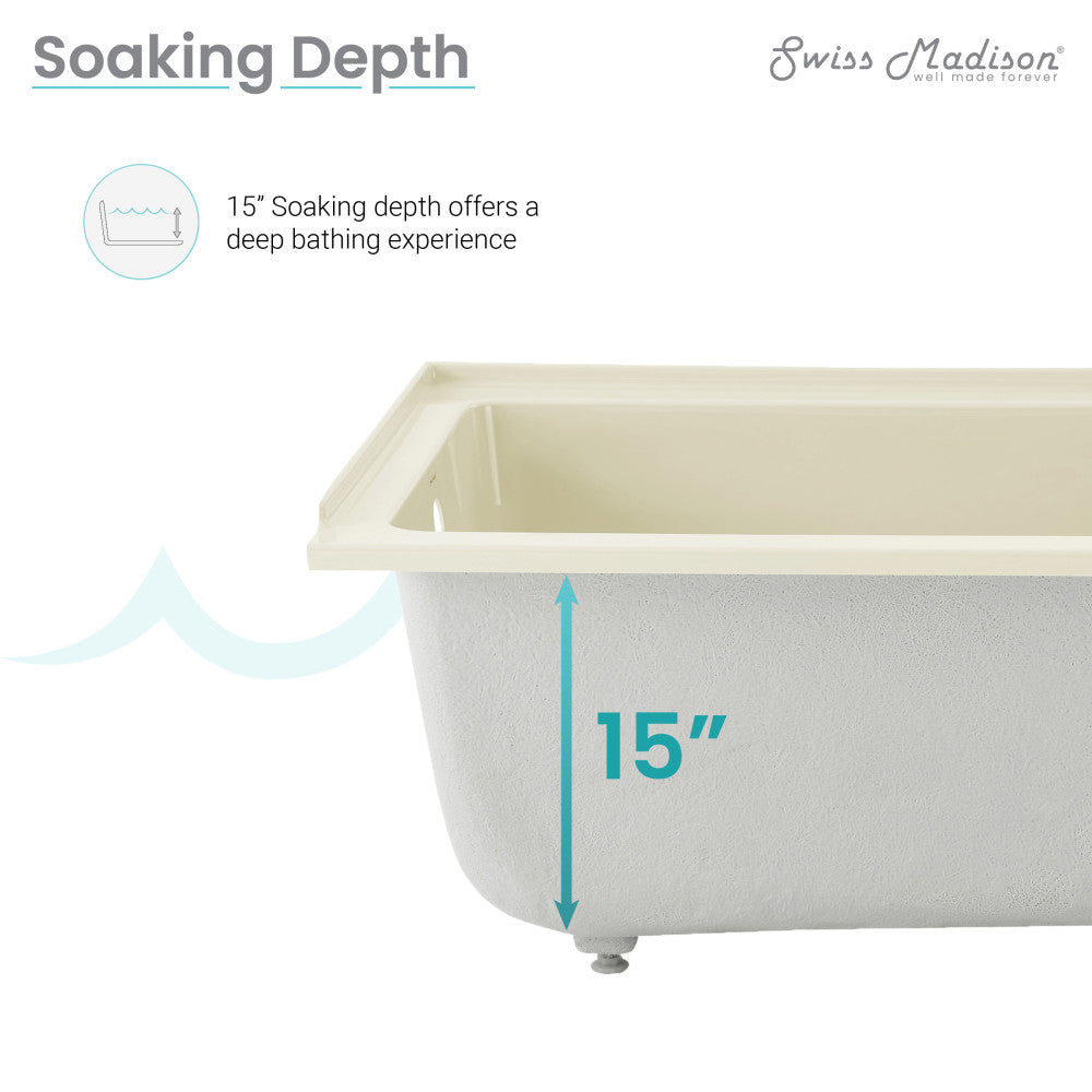 Embrace timeless elegance with the Voltaire collection, fusing classic charm with contemporary comfort. Elevate your bathroom into a serene sanctuary with our alcove bathtubs, offering both tranquility and sophistication in a comfortable setting. Offered in bisque with a glossy finish.