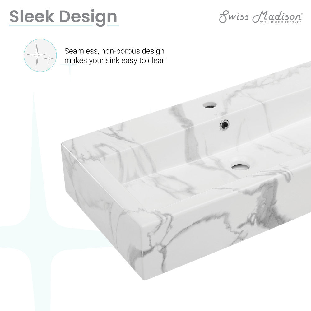 Voltaire Wide Rectangle Vessel Sink in White Marble