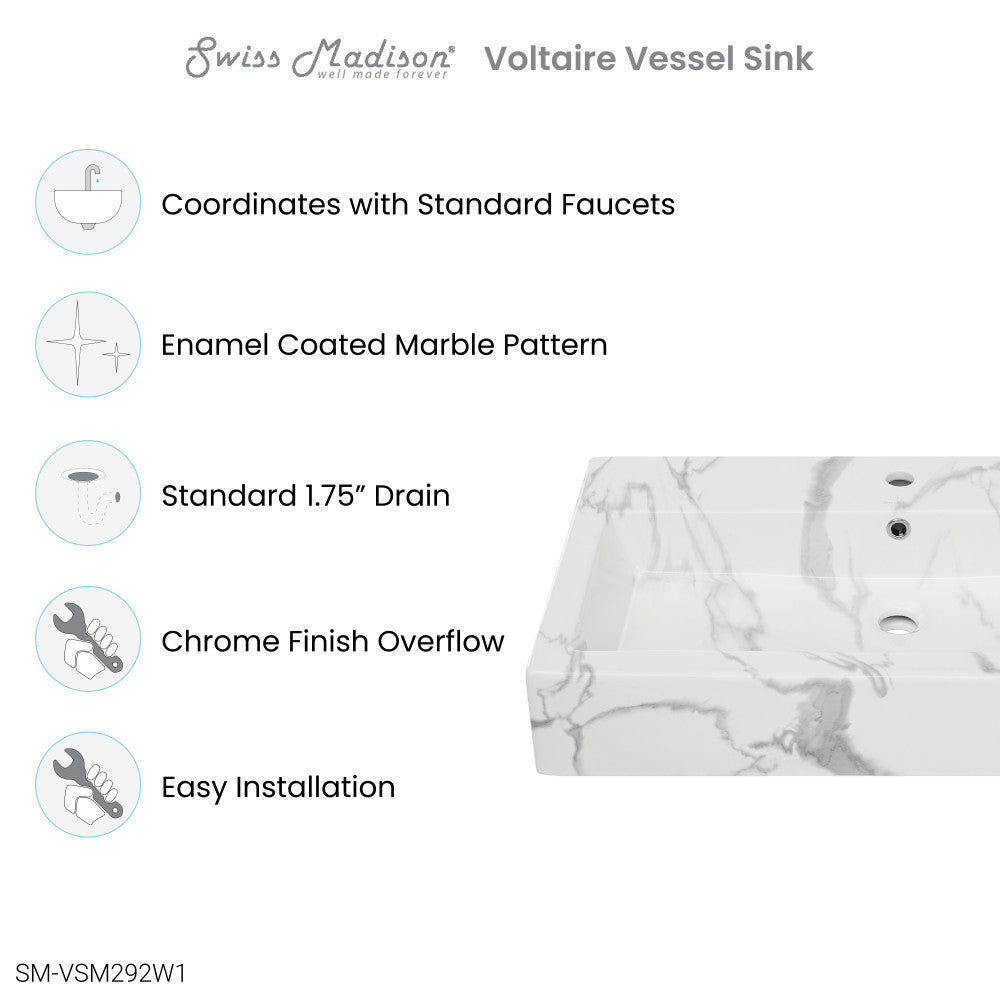 Embrace timeless elegance with the Voltaire collection, fusing classic charm with contemporary comfort. Elevate your bathroom aesthetic with our vessel sinks, blending artistry and utility to create a stunning statement piece. Offered in marbled white with a glossy finish.