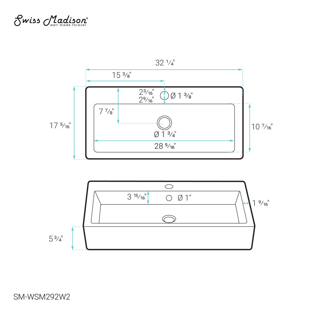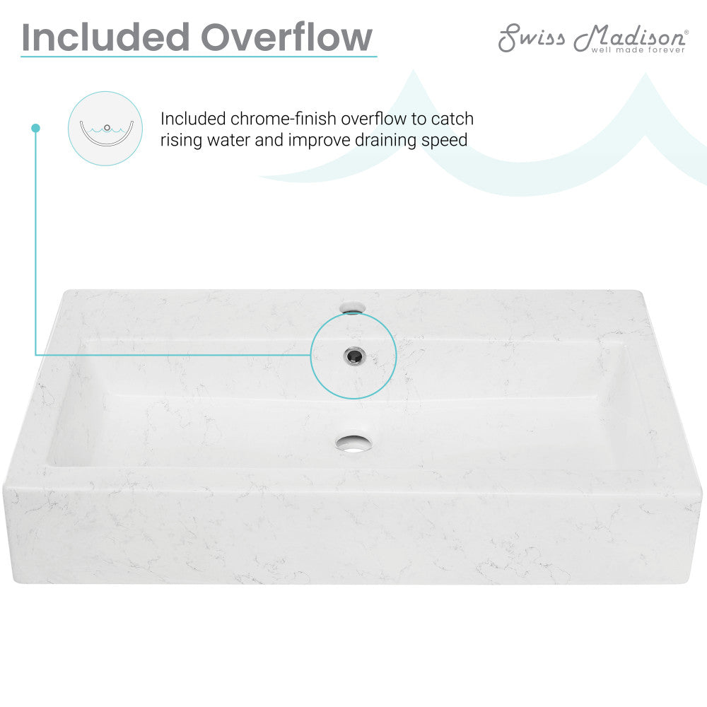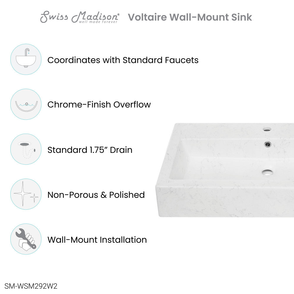 Voltaire Wide Rectangle Wall Hung Sink in Static Marble