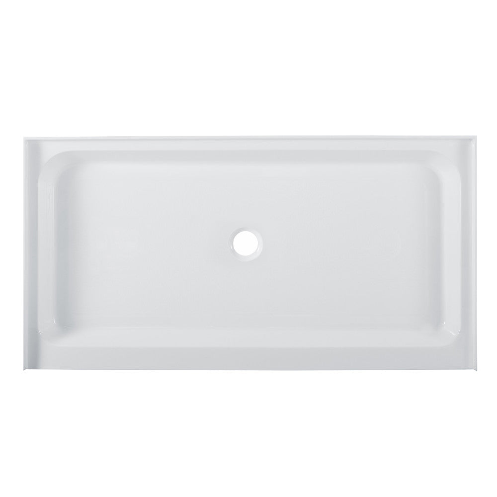 Voltaire 60" x 32" Acrylic White, Single-Threshold, Center Drain, Shower Base