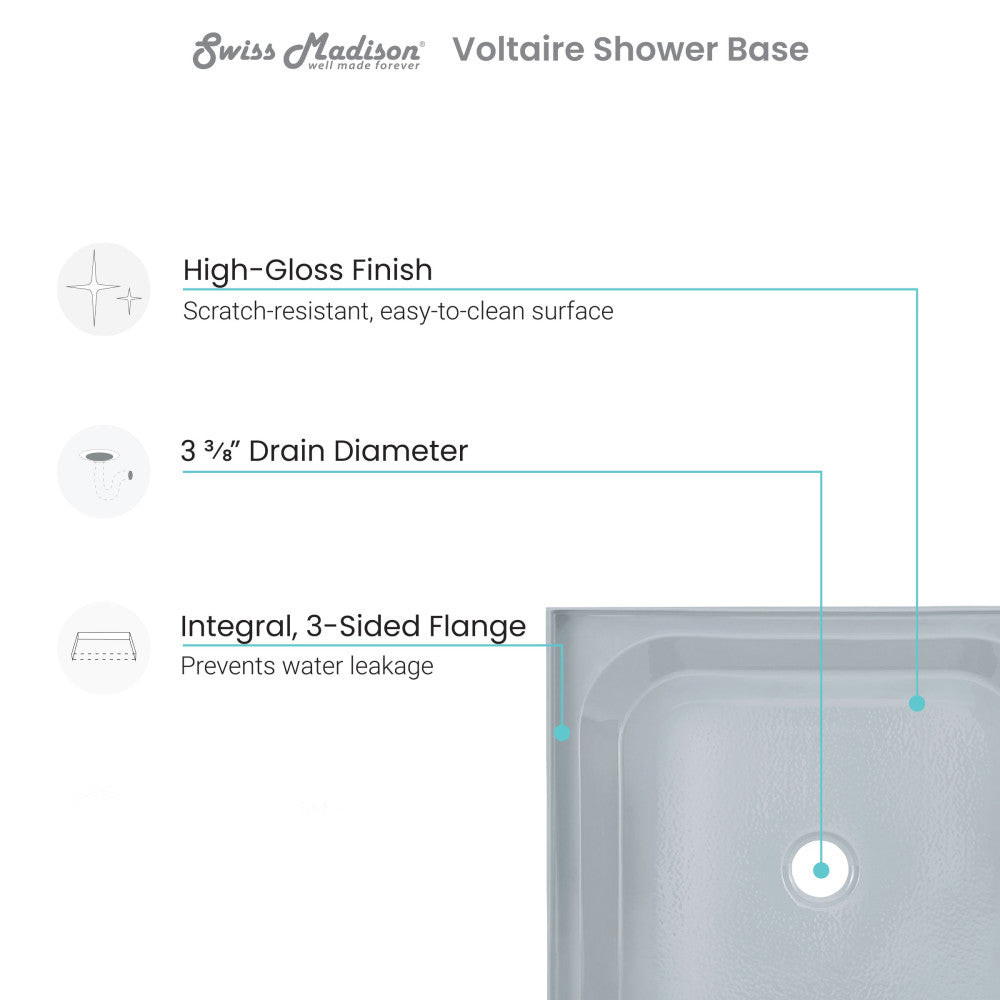 Voltaire 60" x 36" Single-Threshold, Center Drain, Shower Base in Grey