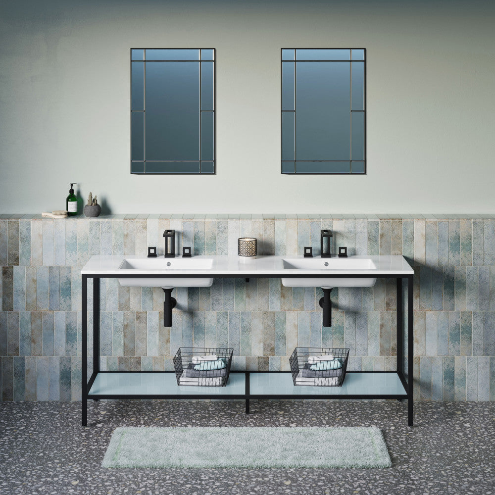 Pierre 72 Double, Freestanding, Open Shelf, Matte Black Metal Frame Bathroom Vanity